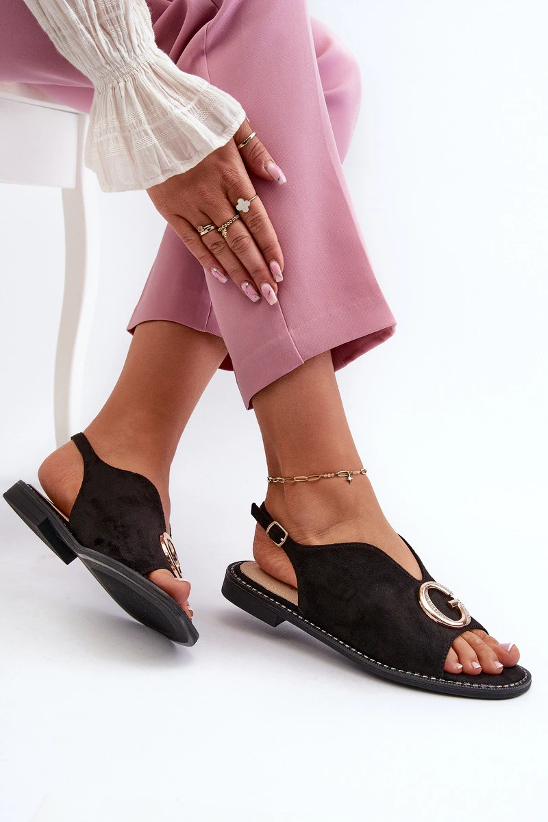 Elegantní dámské sandály s ozdobou z ekosuede S.Barski KV27-058 Černé