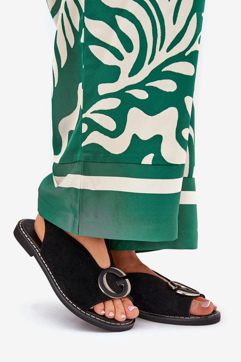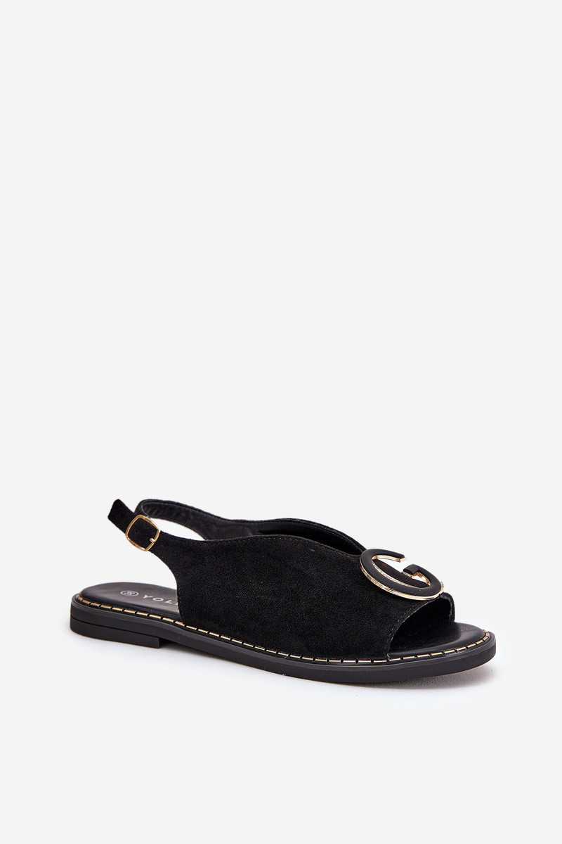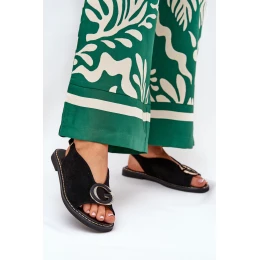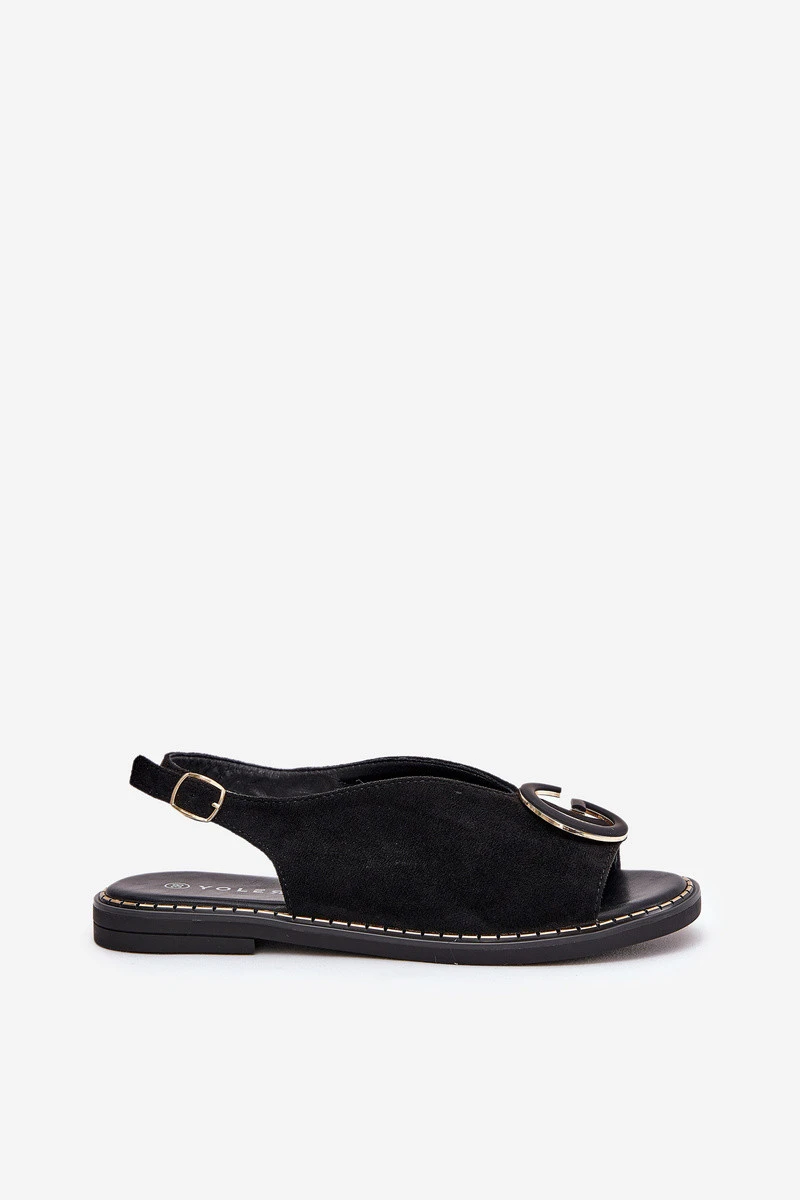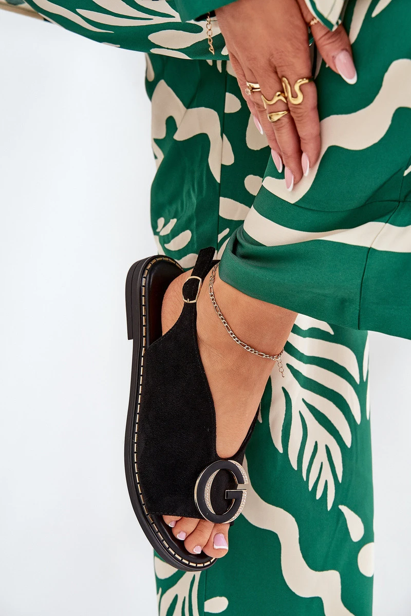 Elegantní Dámské Sandály S Zlatou Ozdobou Na Plochém Podpatku Černé S.Barski model 21685679 - Boto