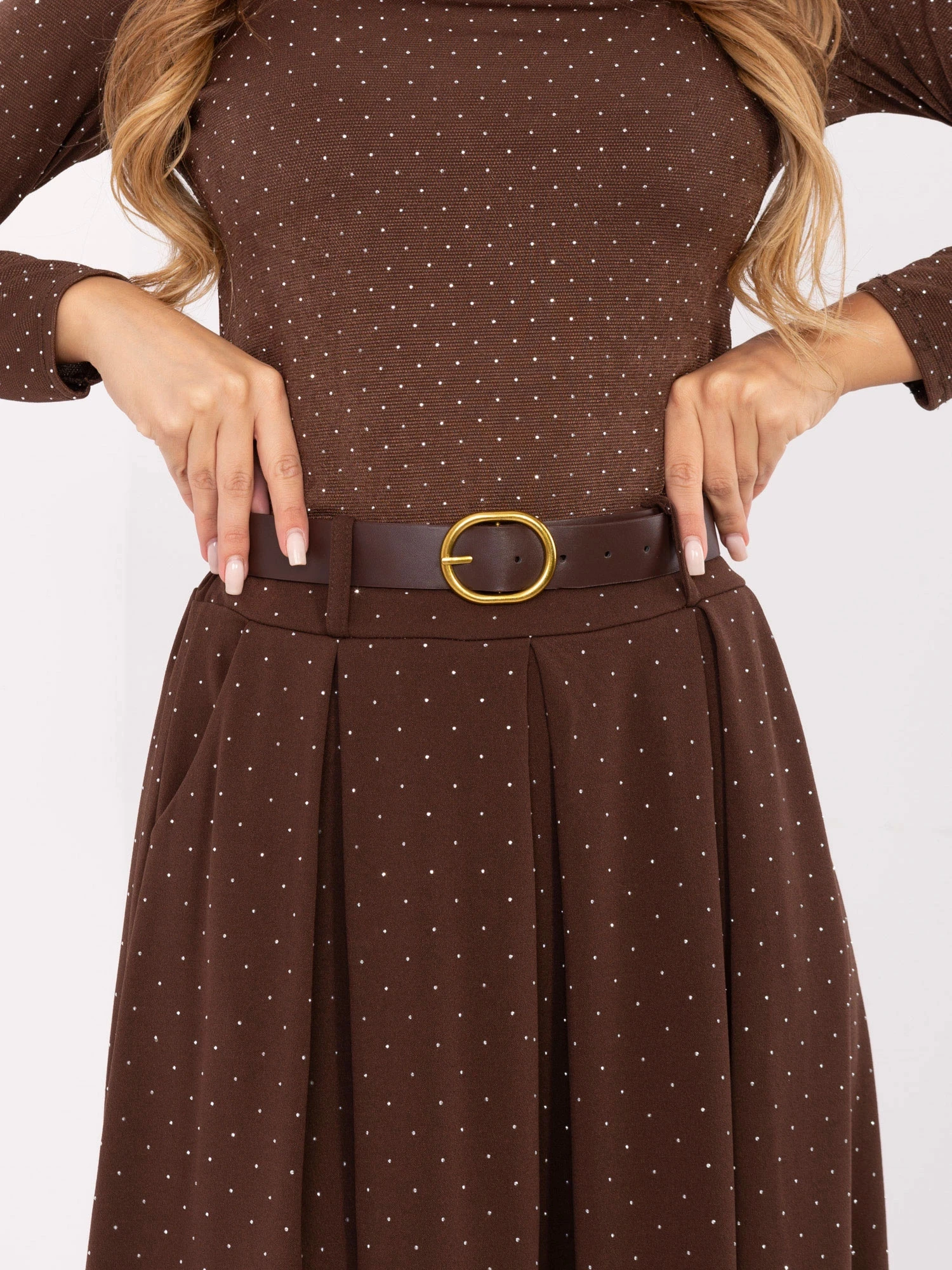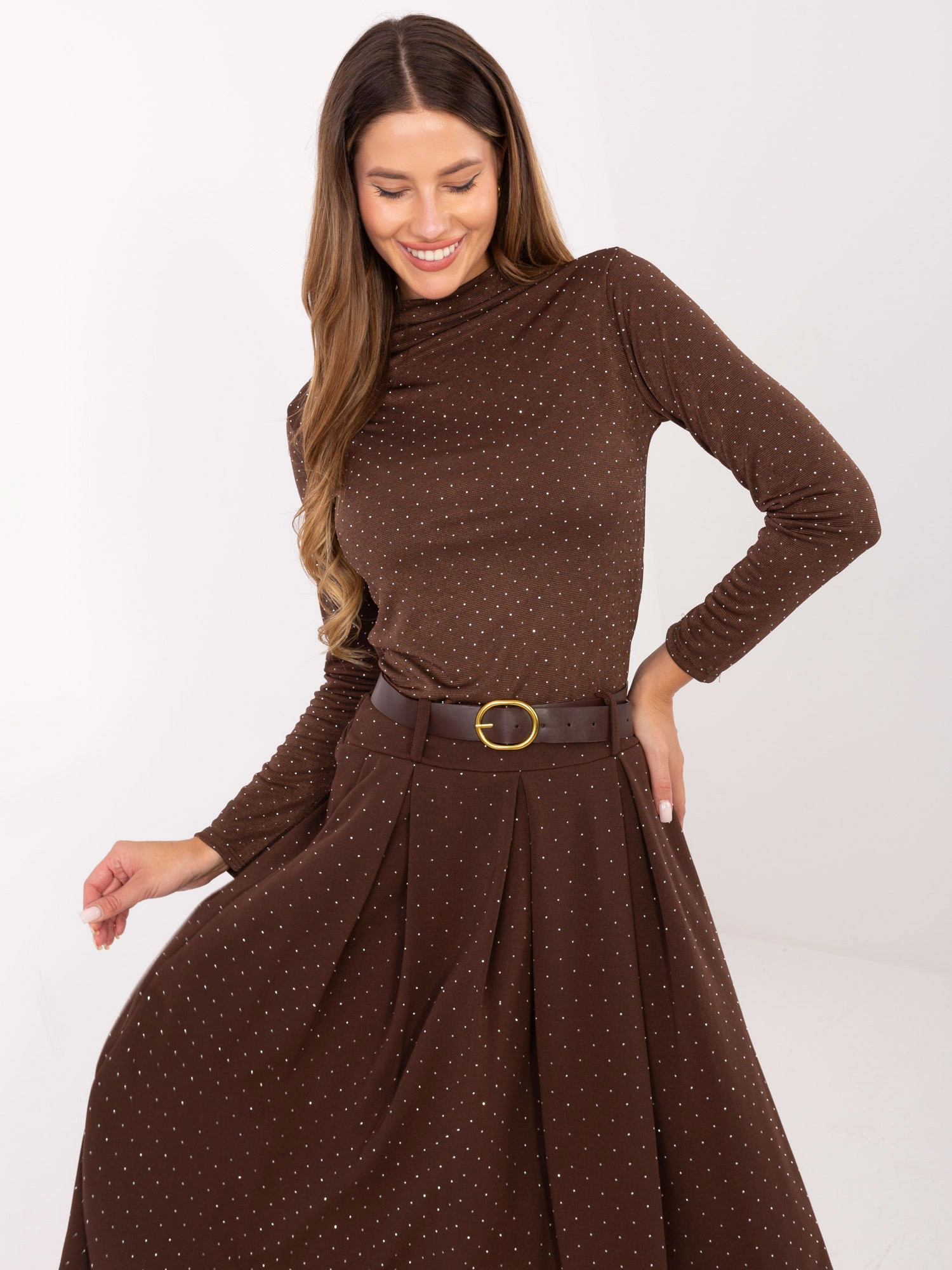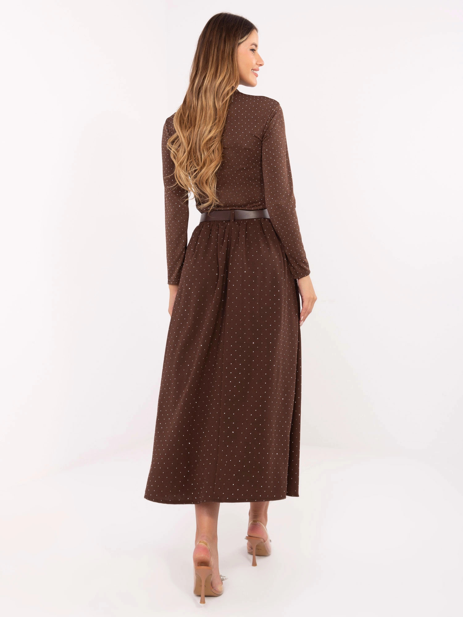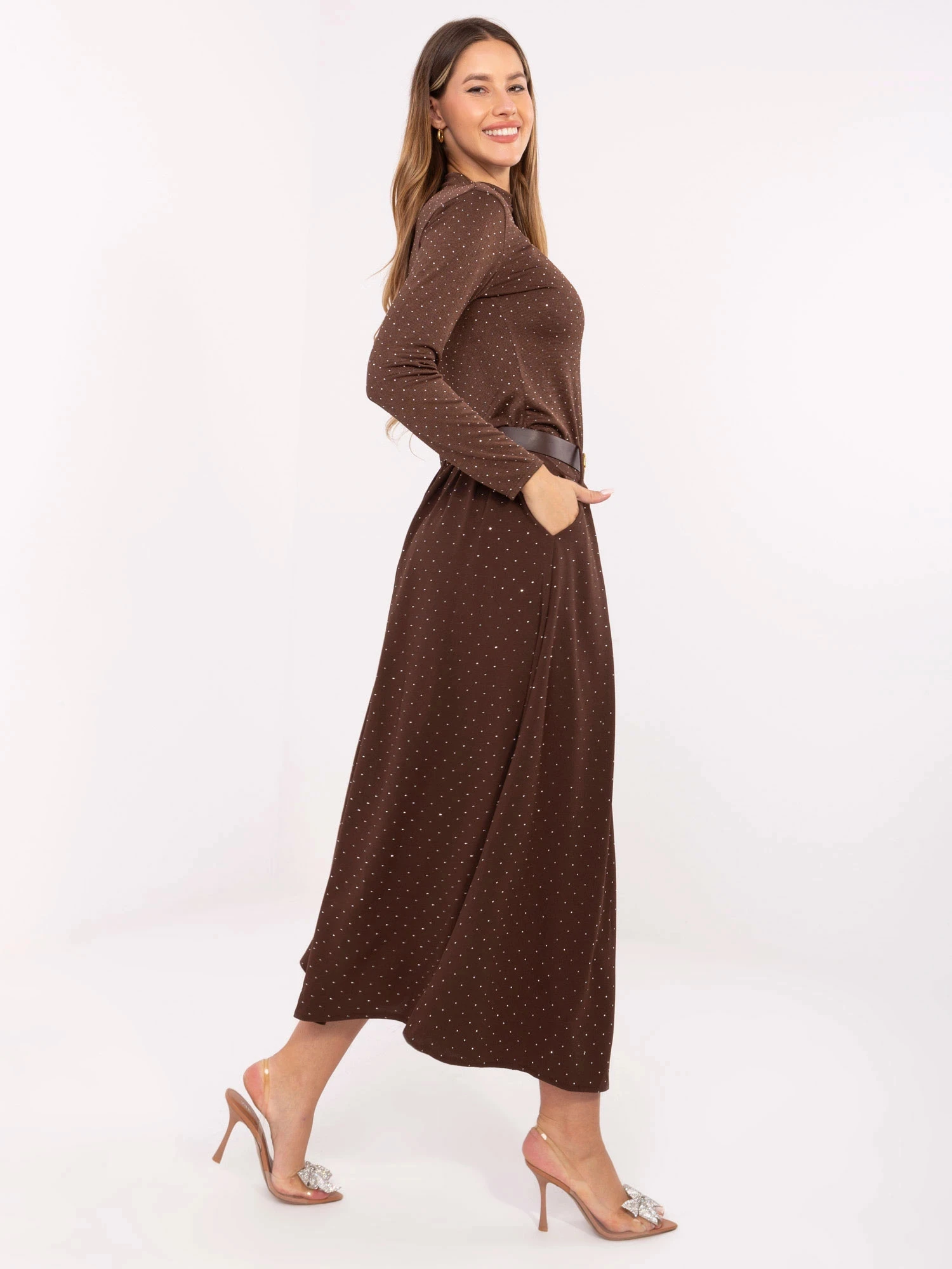 Elegantní hnědá maxi sukně v ozdobném provedení (19720)