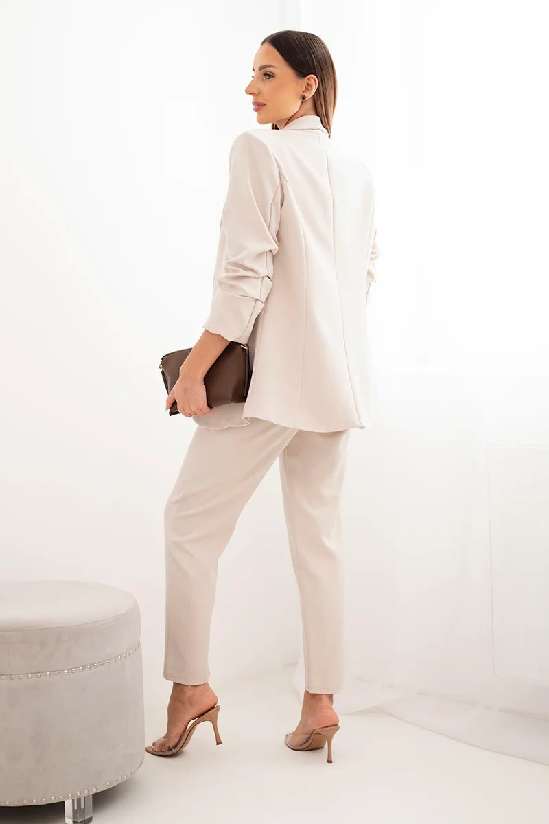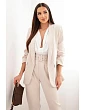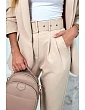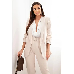 Představujeme vám elegantní sadu saka a kalhot. Bunda bez knoflíků s předními klopami. Bunda má podšívku. Kalhoty s kapsami a páskem. Pružný pásek všitý do pasu kalhot na zadní straně. Velmi módní a stylová sada. Sada je vyrobena z vysoce kvalitního materiálu. Velikost je univerzální a vyhovuje dámám velikosti S, M nebo L.