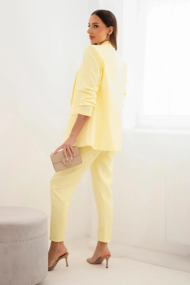 Elegantní komplet saka s kalhotami žlutý