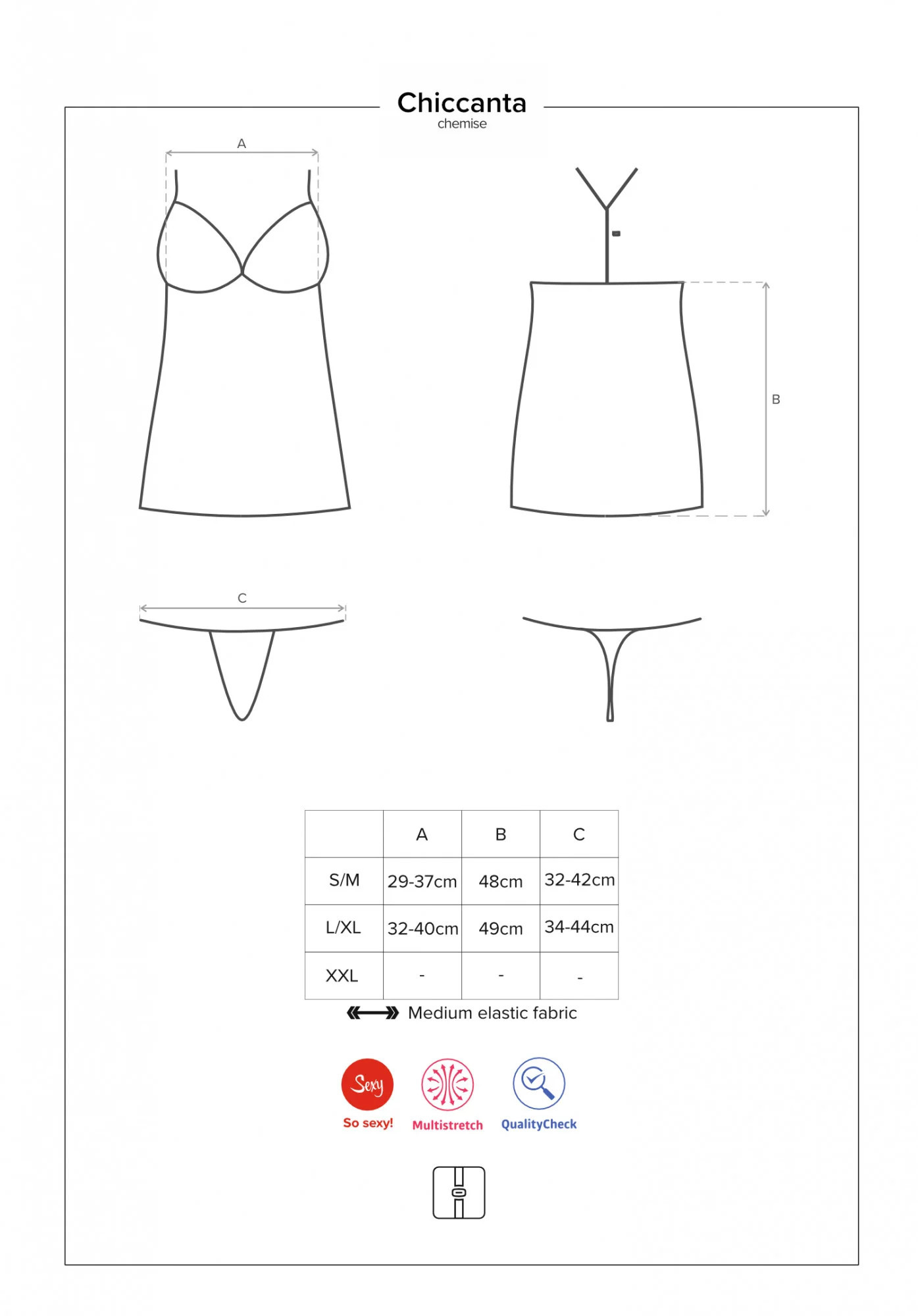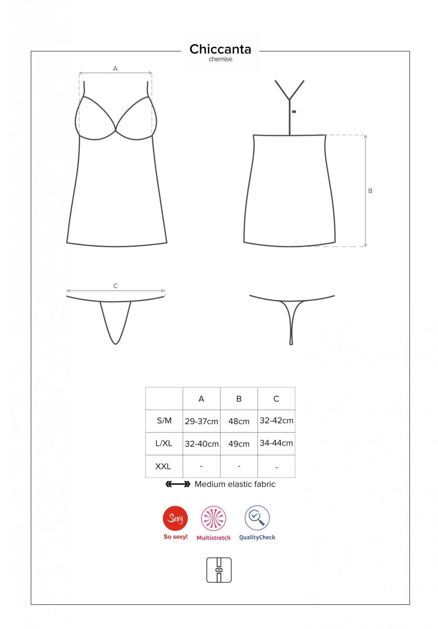 Produkt Elegantní košilka Chiccanta chemise - Obsessive prodáváme v těchto velikostech: S/M, L/XLa barvách černá5901688224250, 5901688224267