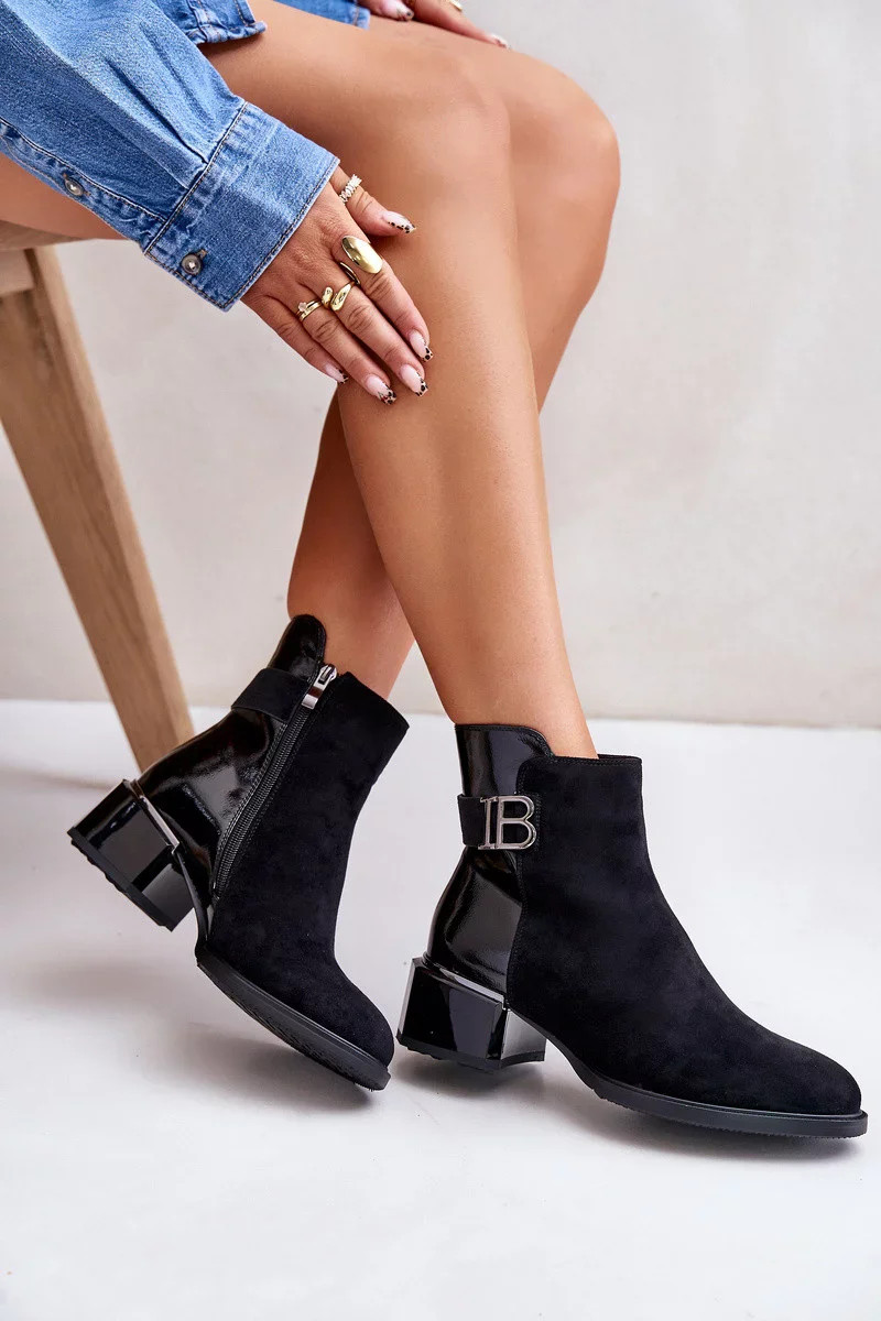 Elegantní dámské kotníkové boty vyrobené z kombinace eko semiše a eko kůže.