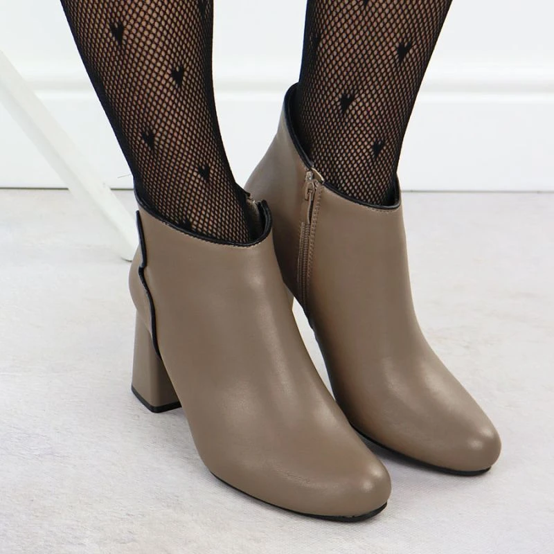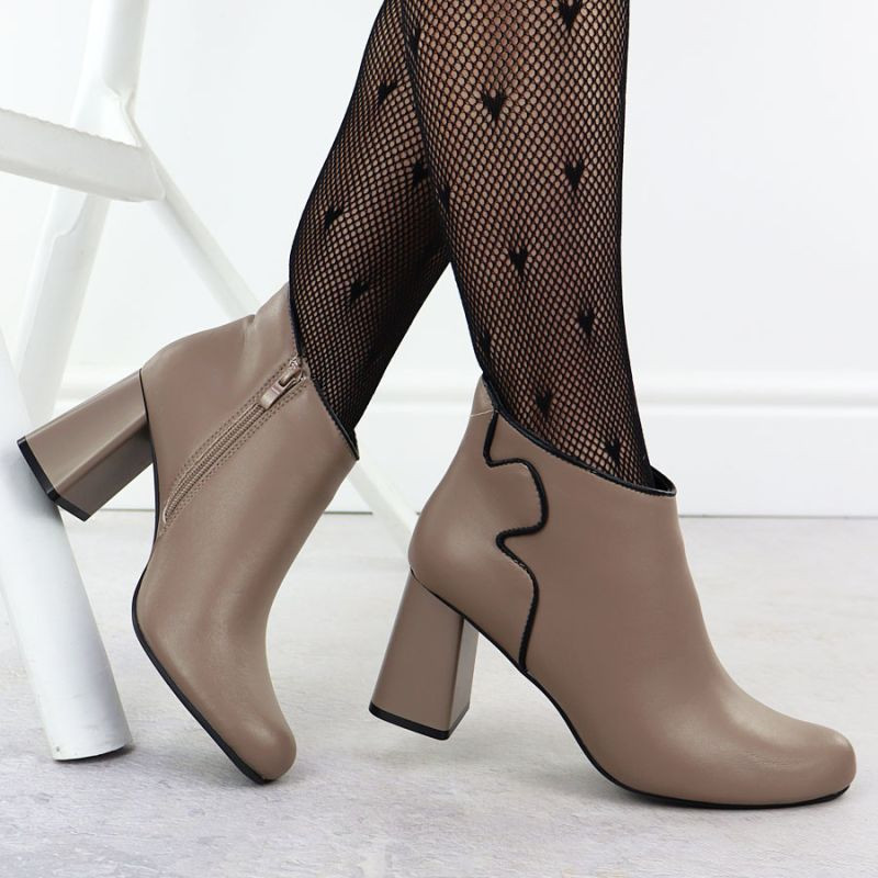 Elegantní kožené boty na jehlovém podpatku béžové model 21905510 - JEZZI