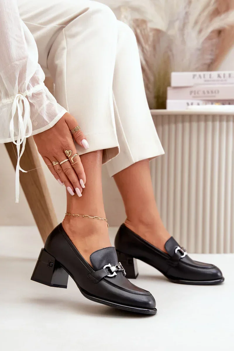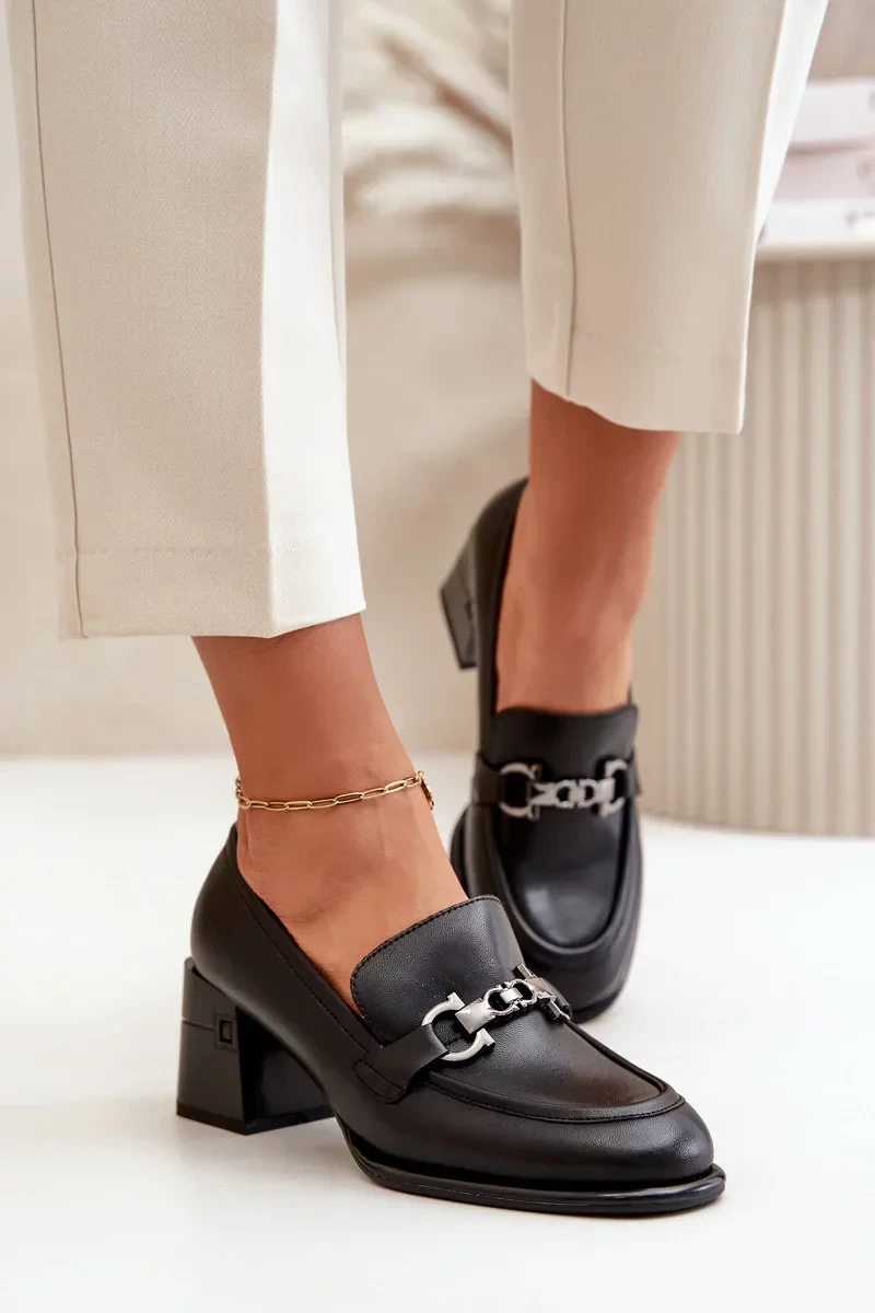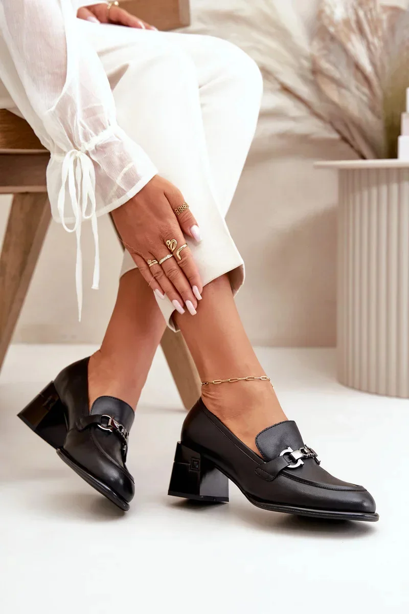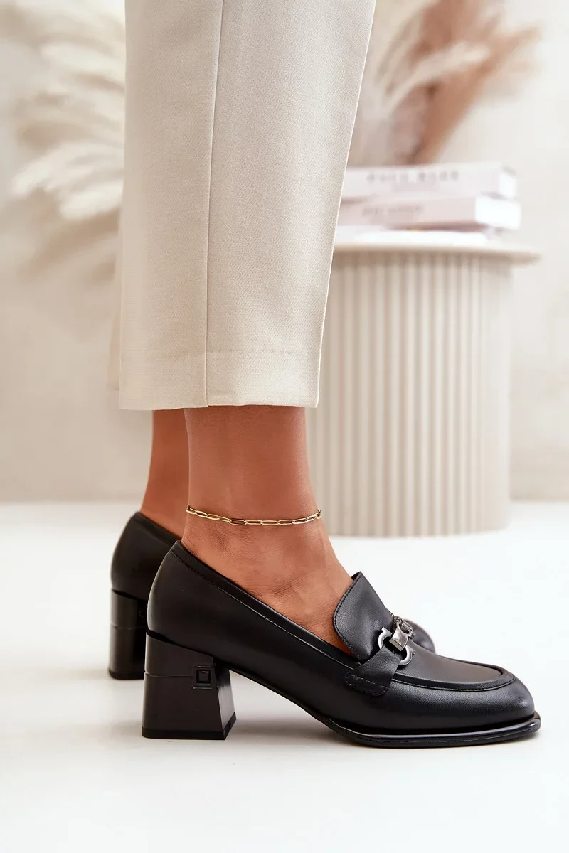 Elegantní Kožené Polobotky Dámské Na Podpatku Černé Vinceza