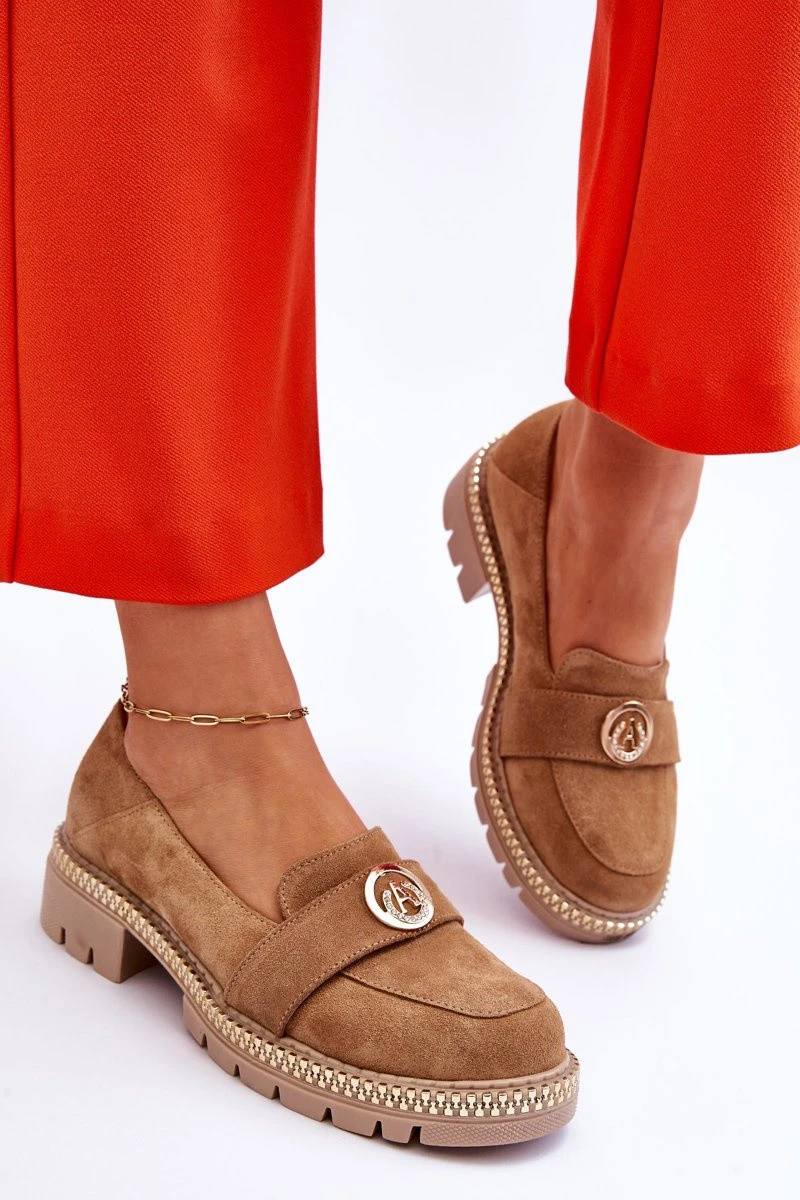 Elegantní mokasíny tmavě béžové semišové model 21613258 - Boto