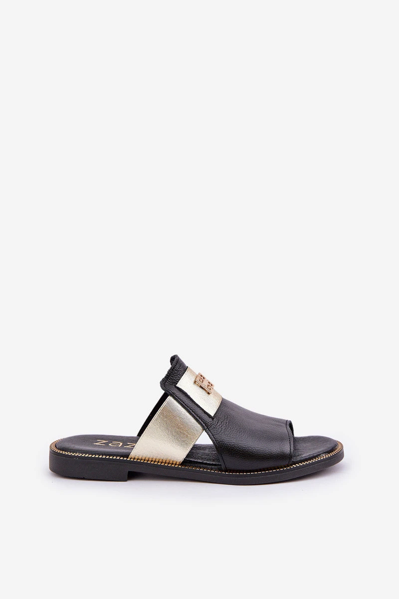 Elegantní Pantofle Z Přírodní Kůže Na Plochém Podpatku Zazoo 40423 Černé