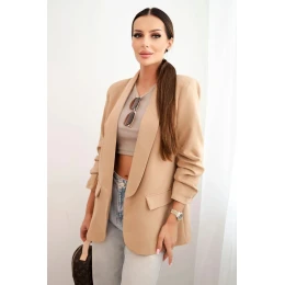 Elegantní sako s klopami camelové