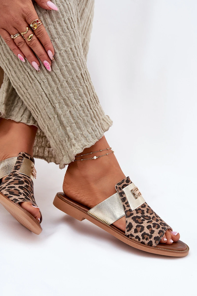 Elegantní Sandály Z Přírodní Kůže Na Ploché Podpatky model 21697414 Panterka - Zazoo