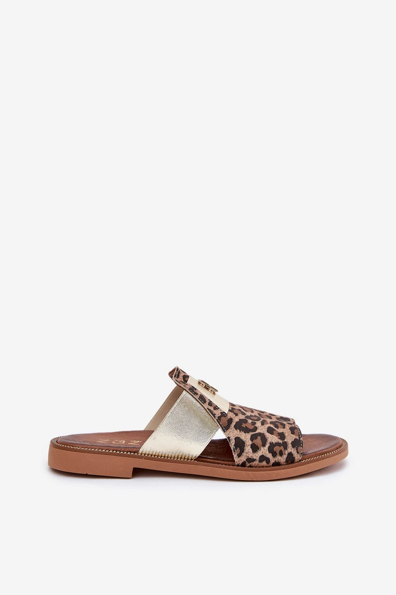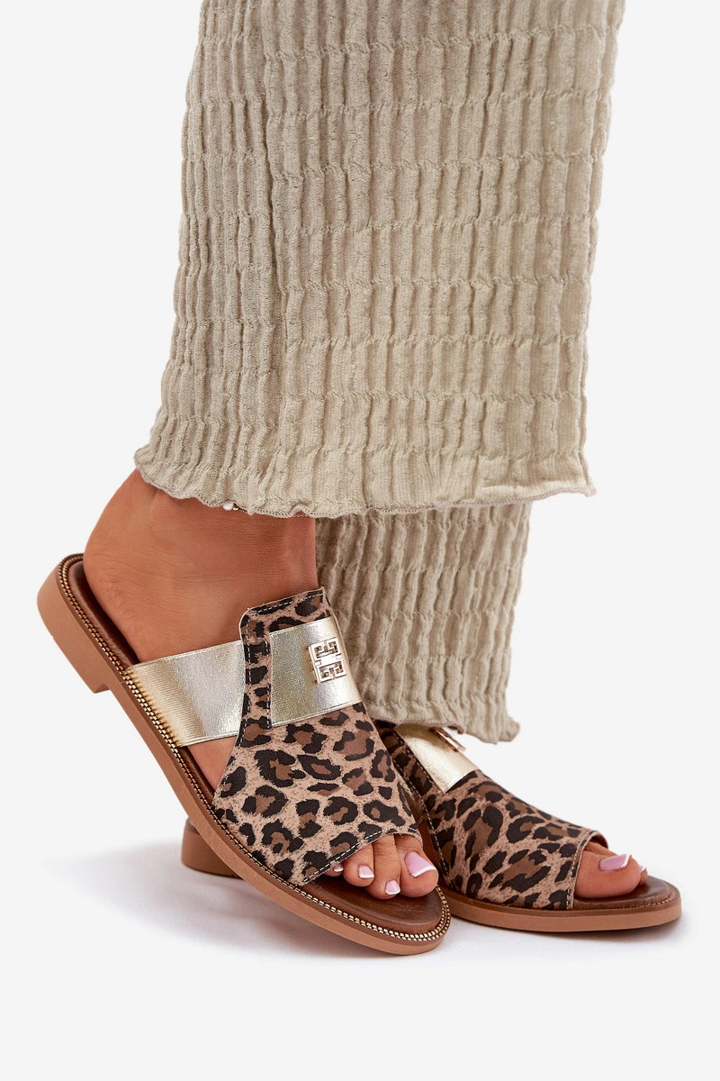 Elegantní Sandály Z Přírodní Kůže Na Ploché Podpatky Zazoo 40423 Panterka