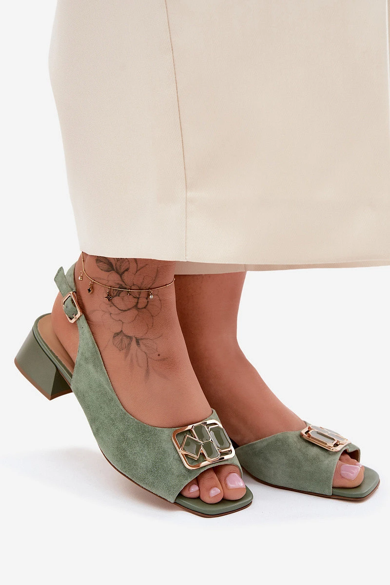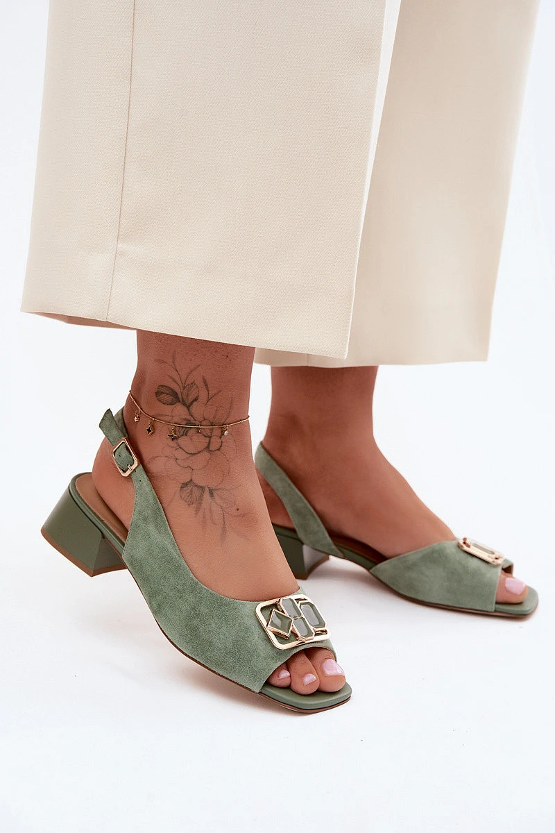 Elegantní sandály z přírodního semiše na podpatku D&A CE61-3127 Zelené