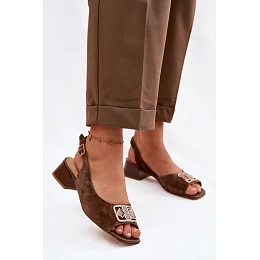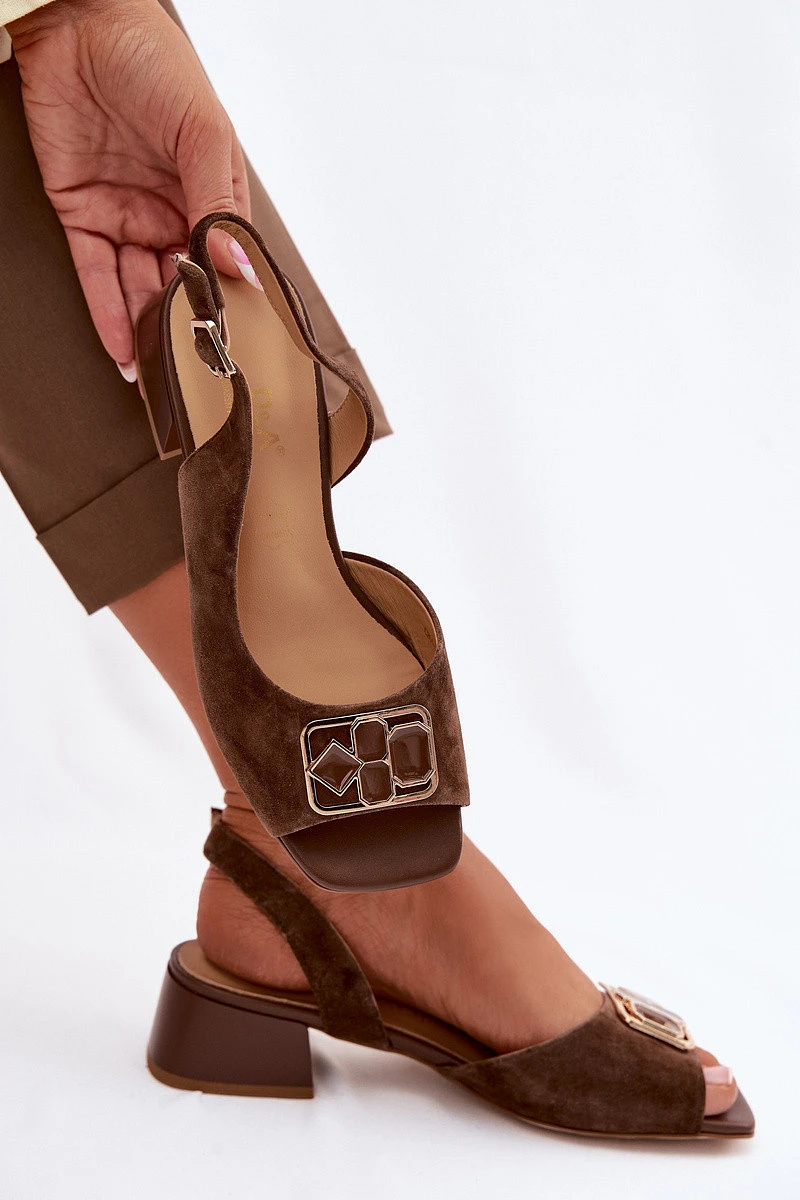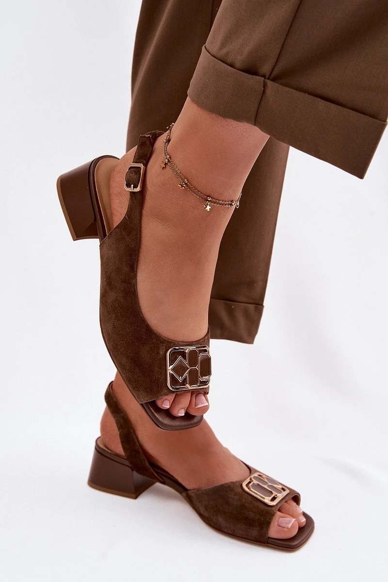 Elegantní sandály z přírodního semiše na podpatku D&A model 22100299 Hnědé - S.Barski