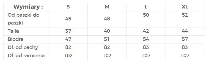 | Od podpaží k podpaží | 45 | 48 | 50 | 52 |