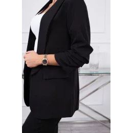 Představujeme vám elegantní sadu saka a kalhot. Bunda bez knoflíků s předními klopami. Bunda má podšívku. Kalhoty s kapsami a páskem. Pružný pásek všitý do pasu kalhot na zadní straně. Velmi módní a stylová sada. Sada je vyrobena z vysoce kvalitního materiálu. Velikost je univerzální a vyhovuje dámám velikosti S, M nebo L.