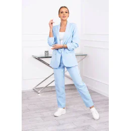 Představujeme vám elegantní sadu saka a kalhot. Bunda bez knoflíků s předními klopami. Bunda má podšívku. Kalhoty s kapsami a páskem. Pružný pásek všitý do pasu kalhot na zadní straně. Velmi módní a stylová sada. Sada je vyrobena z vysoce kvalitního materiálu. Velikost je univerzální a vyhovuje dámám velikosti S, M nebo L.