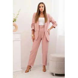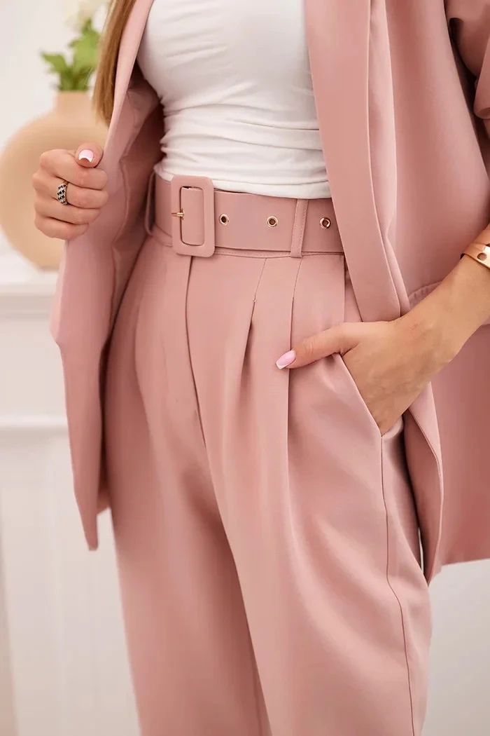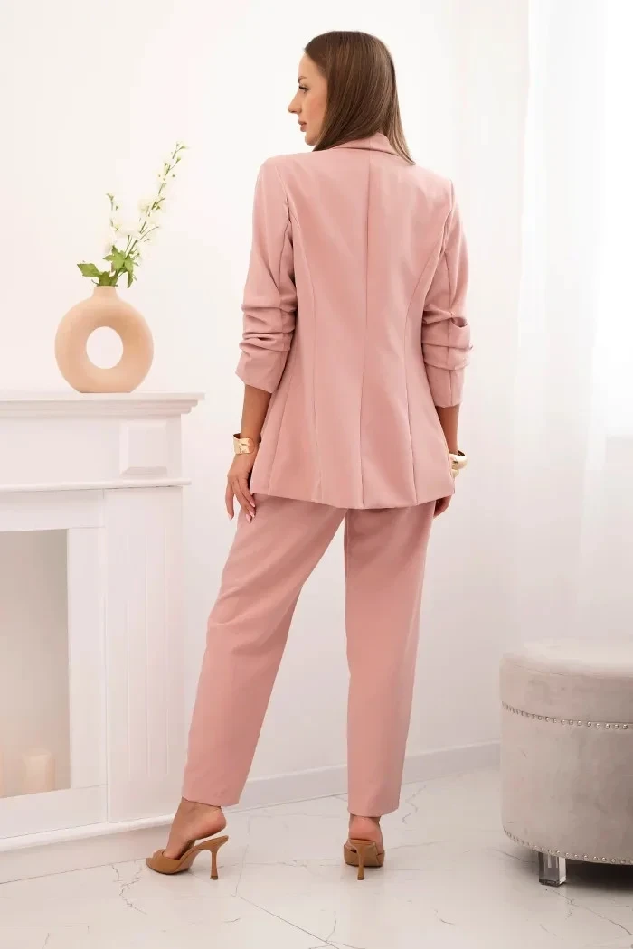 Elegantní souprava saka a kalhot pudrově růžová