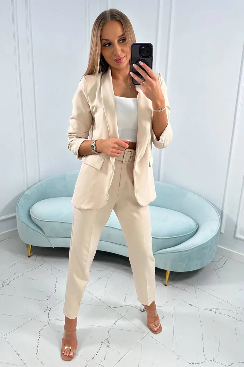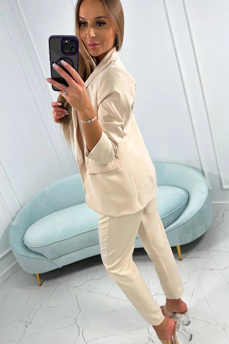 Elegantní souprava saka a kalhot tmavě béžové barvy