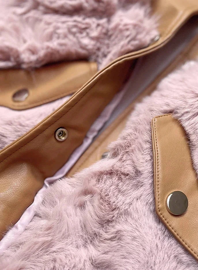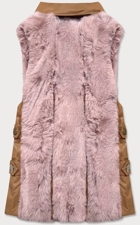 Elegantní vesta v barvě z eko kůže a kožešiny model 15831749 - S'WEST