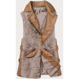 Elegantní vesta v karamelovo-béžové barvě z eko kůže a kožešiny (BR9592-48022)