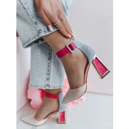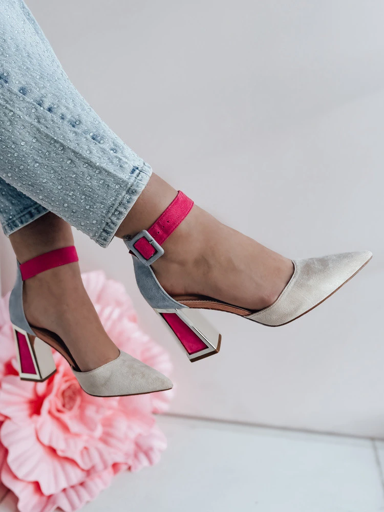 Stylové lodičky na jehlovém podpatku, které dodají módní nádech každému outfitu. Model je vyroben z látky a semišové ekologické kůže. Stélka je z ekologické kůže. Boty se zapínají páskem u kotníku. Špičatý nos. Ideální pro ženy, které ocení originální styl a elegantní doplňky.