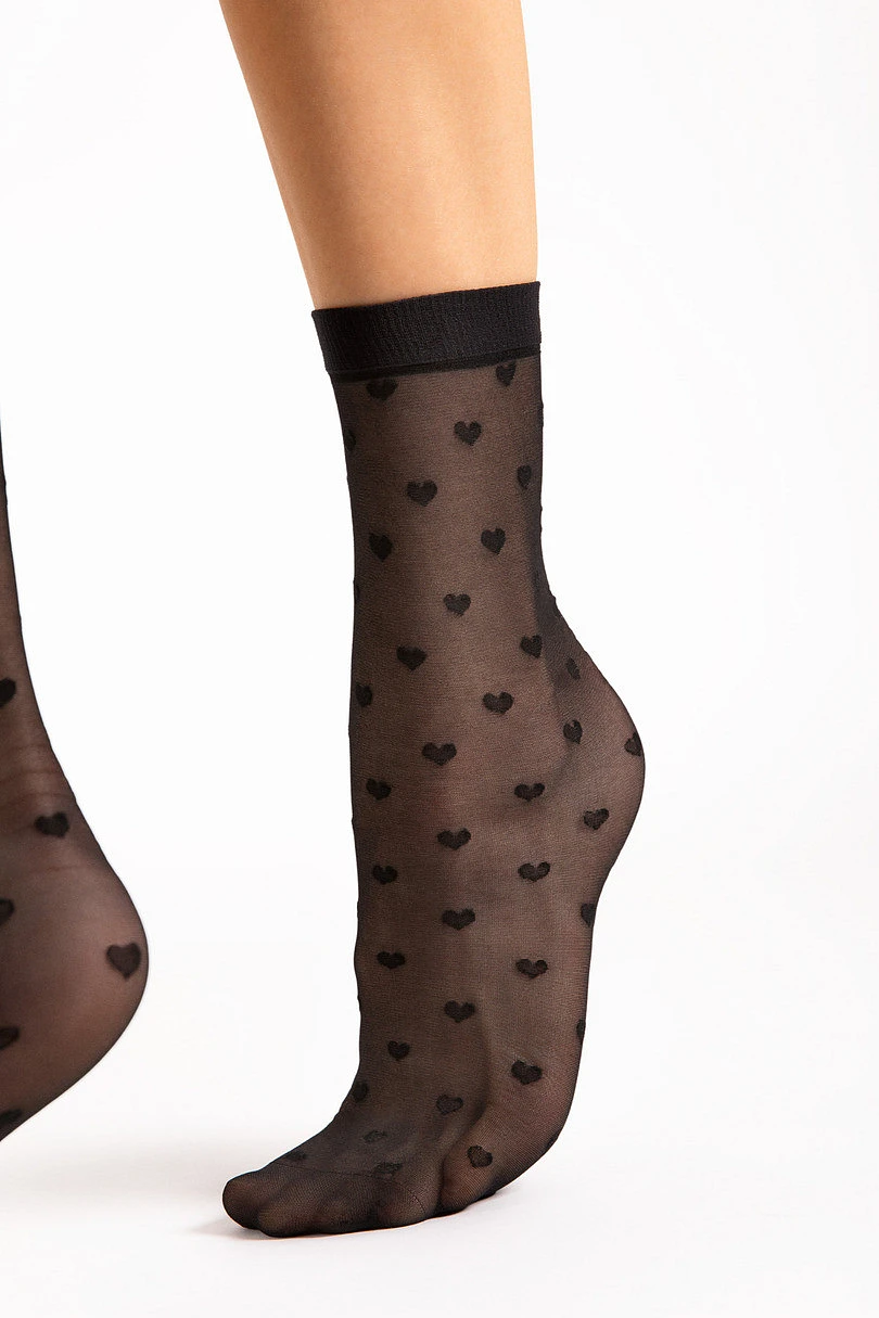 Ponožky Fiore Elia 20 DEN jsou okouzlujícím a stylovým doplňkem, který dodá lehkost a dívčí nádech každému outfitu. Průhledný materiál zdobený jemným vzorem malých srdíček upoutá pozornost a dodá celku romantický a módní vzhled. Díky tenké struktuře 20 DEN jsou ponožky lehké, vzdušné a mimořádně pohodlné na nošení - ideální pro každodenní nošení i jako stylový doplněk elegantních i ležérních outfitů. Skvěle se hodí k balerínám, mokasínám i jehlovým podpatkům. Díky vysoké kvalitě materiálu (92 % polyamid, 8 % elastan) jsou ponožky pružné, dobře sedí na noze a dlouho drží tvar. Model Elia je ideální volbou pro ženy, které ocení módní detaily a jemnou eleganci.