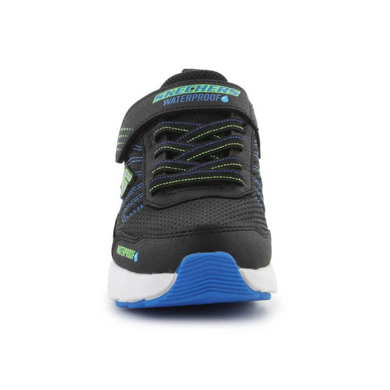 Sneakersy Skechers Elite Sport Tread – Aquavek (model 406334L-BKBL) to wytrzymałe i nowoczesne obuwie dla dzieci przygotowane na każdą aktywność. Wodoodporna konstrukcja z uszczelnionymi szwami chroni przed wilgocią, a cholewka z oddychającej siateczki i syntetycznych materiałów zapewnia komfort i trwałość. Elastyczne sznurówki w połączeniu z systemem intuitive adaptive (łatwe zakładanie i zdejmowanie) gwarantują pewne dopasowanie. Wkładka amortyzująca dba o komfort stóp, a miękka, wstrząso-tłumiąca podeszwa środkowa absorbuje uderzenia. Gumowa podeszwa zewnętrzna zapewnia dobrą przyczepność i stabilność — doskonała na różne nawierzchnie. Buty są lekkie i praktyczne, idealne na codzienne aktywne dni.