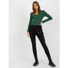 Černé tepláky s kapsami s klopou .
