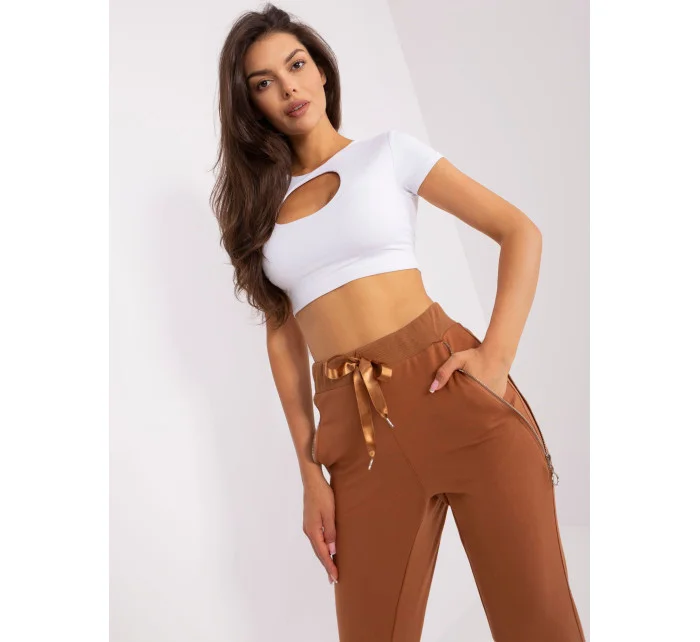 Světle hnědé dámské tepláky se zipy .