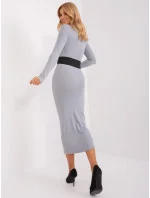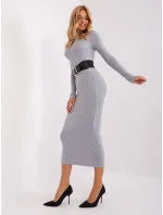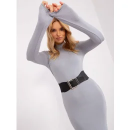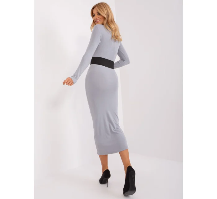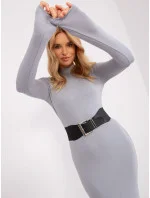 Šedé vypasované maxi šaty s polovičním rolákem.