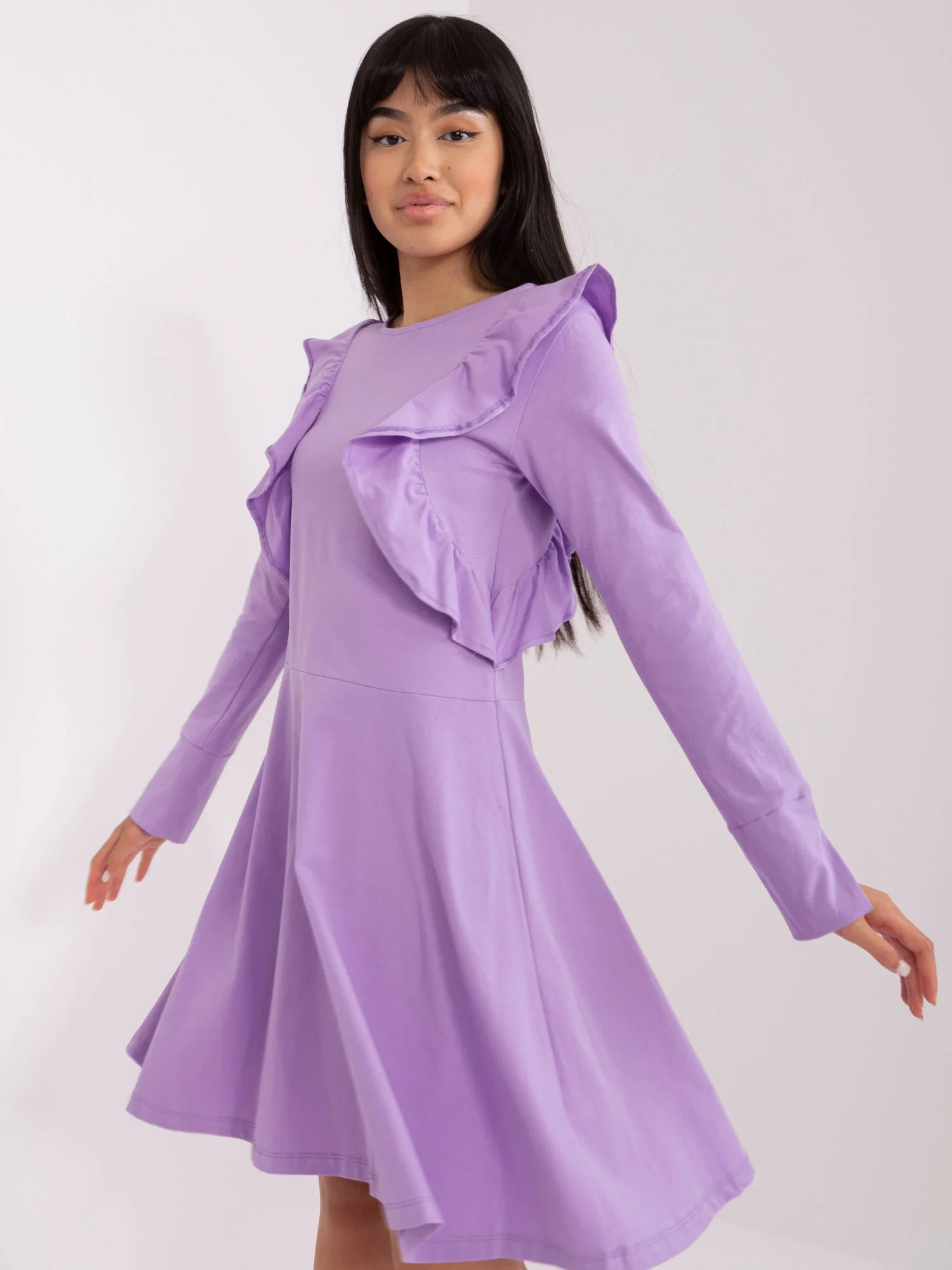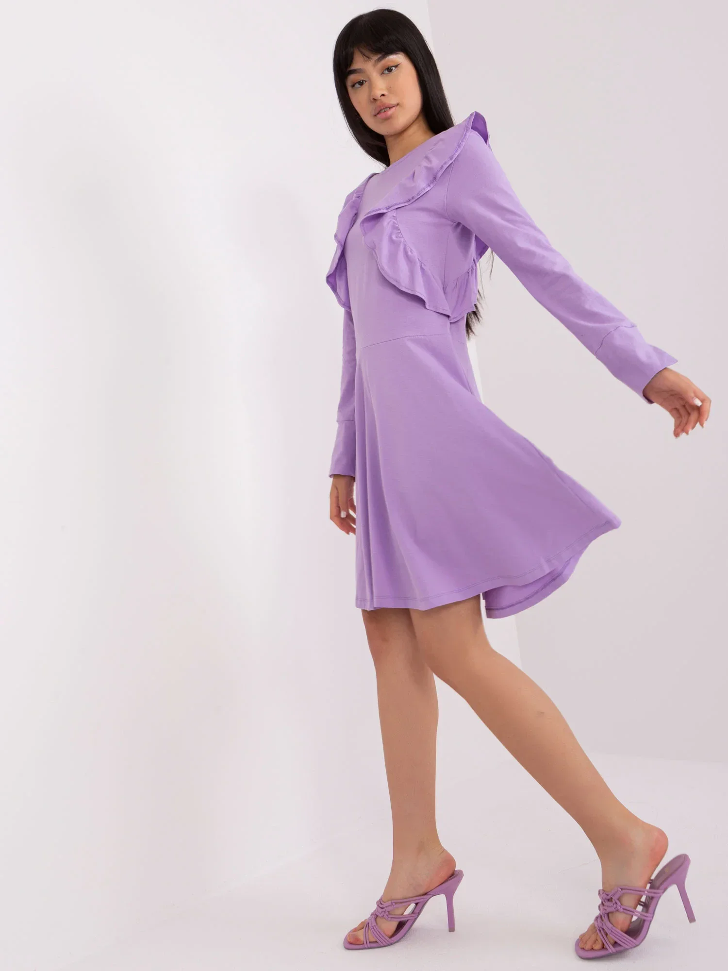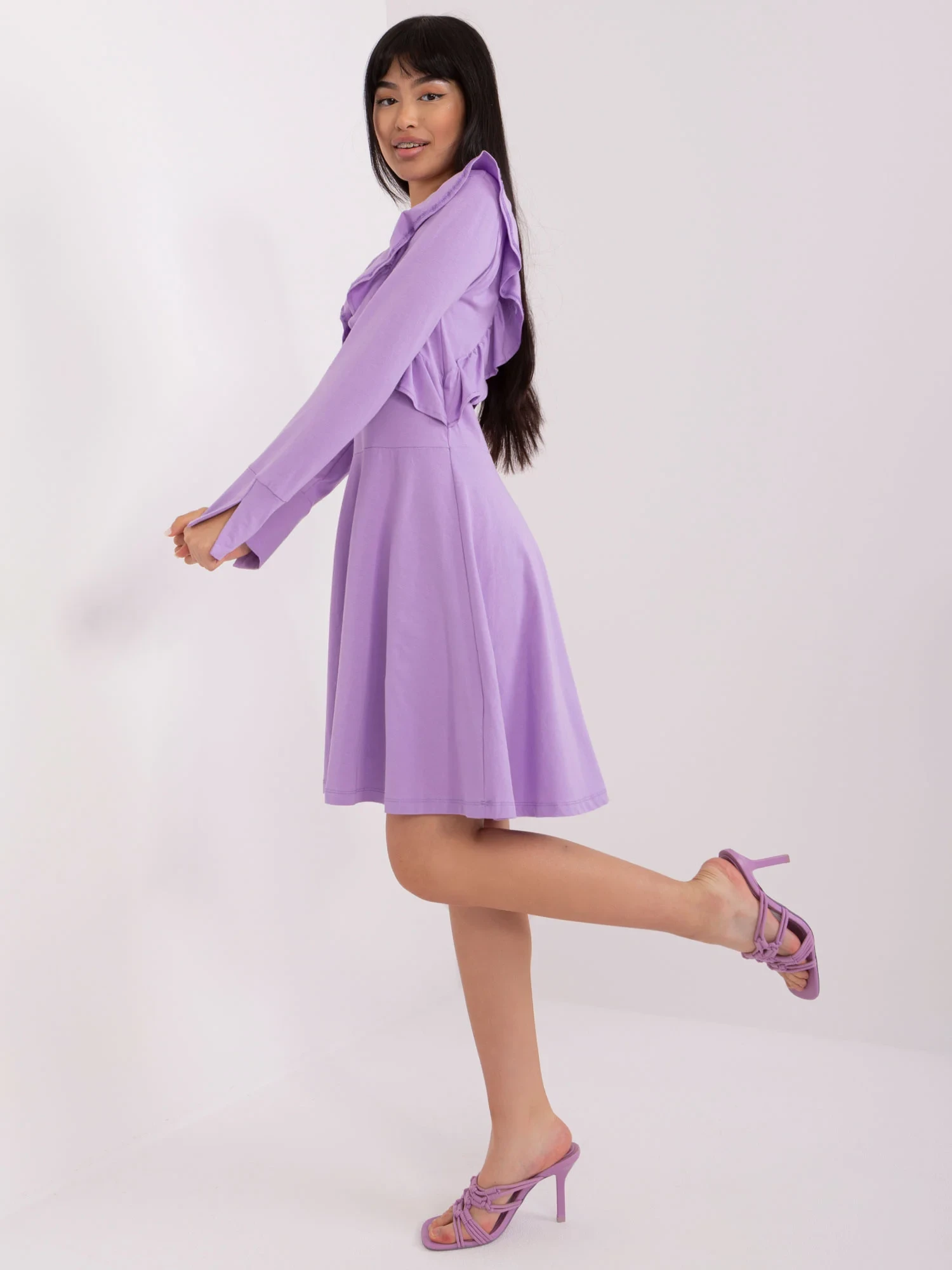Světle fialové bavlněné šaty po kolena .