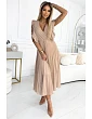 EMILY - Plisované dámské šaty v chrpové barvě s volánky a dekoltem 315-2
