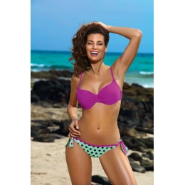 Roztomilé dvoudílné plavky s puntíkovanými kalhotkami. Pro ty, kteří mají rádi aktivní odpočinek nebo líné lenošení na pláži. Kalhotky, které opticky obepínají spodní část.