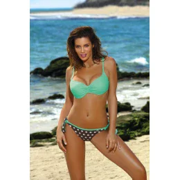 Roztomilé dvoudílné plavky s puntíkovanými kalhotkami. Pro ty, kteří mají rádi aktivní odpočinek nebo líné lenošení na pláži. Kalhotky, které opticky obepínají spodní část.