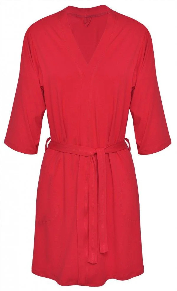 Tenký, hladký župan z měkké viskózy se zavazováním v pase, rukávy po lokty, takže jej lze použít i jako přehoz přes plavky na pláži, s kapsami na bocích a krásnou barvou. 92 % viskóza, 8 % elastan.
