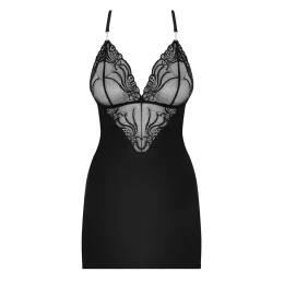 Erotická košilka 828-CHE Obsessive - krásná košilka vyrobená z jemného a velmi hladkého materiálu - nastavitelná ramínka, které tvoří na zadní straně sexy, zkřížený designový prvek - třpytivé kamínky mezi košíčky podprsenky a mezi ramínky - svůdný výstřih zdobený zajímavými motivy - výrobek obsahuje košilku a tanga - pěkná, dokonale elastická tkanina