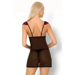 Dámská košilka Kinge LivCo - z příjemného černého průsvitného materiálu - dekolt a ramínka zdobené bordovo-černou krajkou s květinovým vzorem - mezi poprsím mašlička - součástí košilky jsou tanga