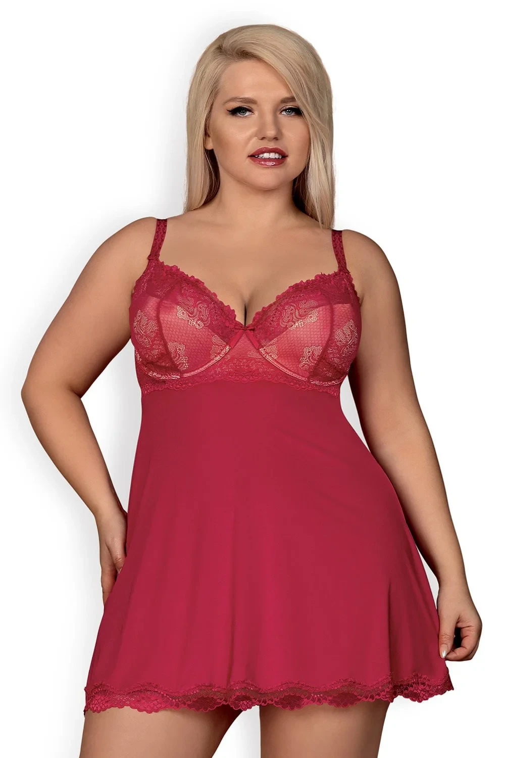 Dámská erotická souprava Rosalyne babydoll OBSESSIVE - červená barva - vyztužená krajková podprsenka speciálně pro velké poprsí - nastavitelné pásky - pohodlí při nošení - zapínání ve třech krocích - přizpůsobí se každému tvaru těla - jemný, krajkový povrch lemu - příjemné a elastické materiály MultistretchMateriálové složení: 85% polyamid + 15% elastan