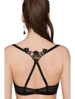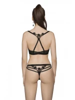 Erotická podprsenka Lisbet ROZA - černá barva - typ braletka - vyrobená z elastického tylu - přední část zdobená nášivkami - zadní část zdobená krajkovou vsadkou, kterou lze odepnout - možnost vyměnit za jednoduchá odepínatelná ramínka, která jsou součástí