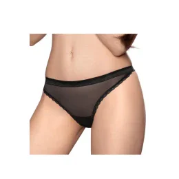 Erotická tanga Ellba ROZA - černá barva - přední část z průhledného tylu - zadní část z krajkové aplikace
