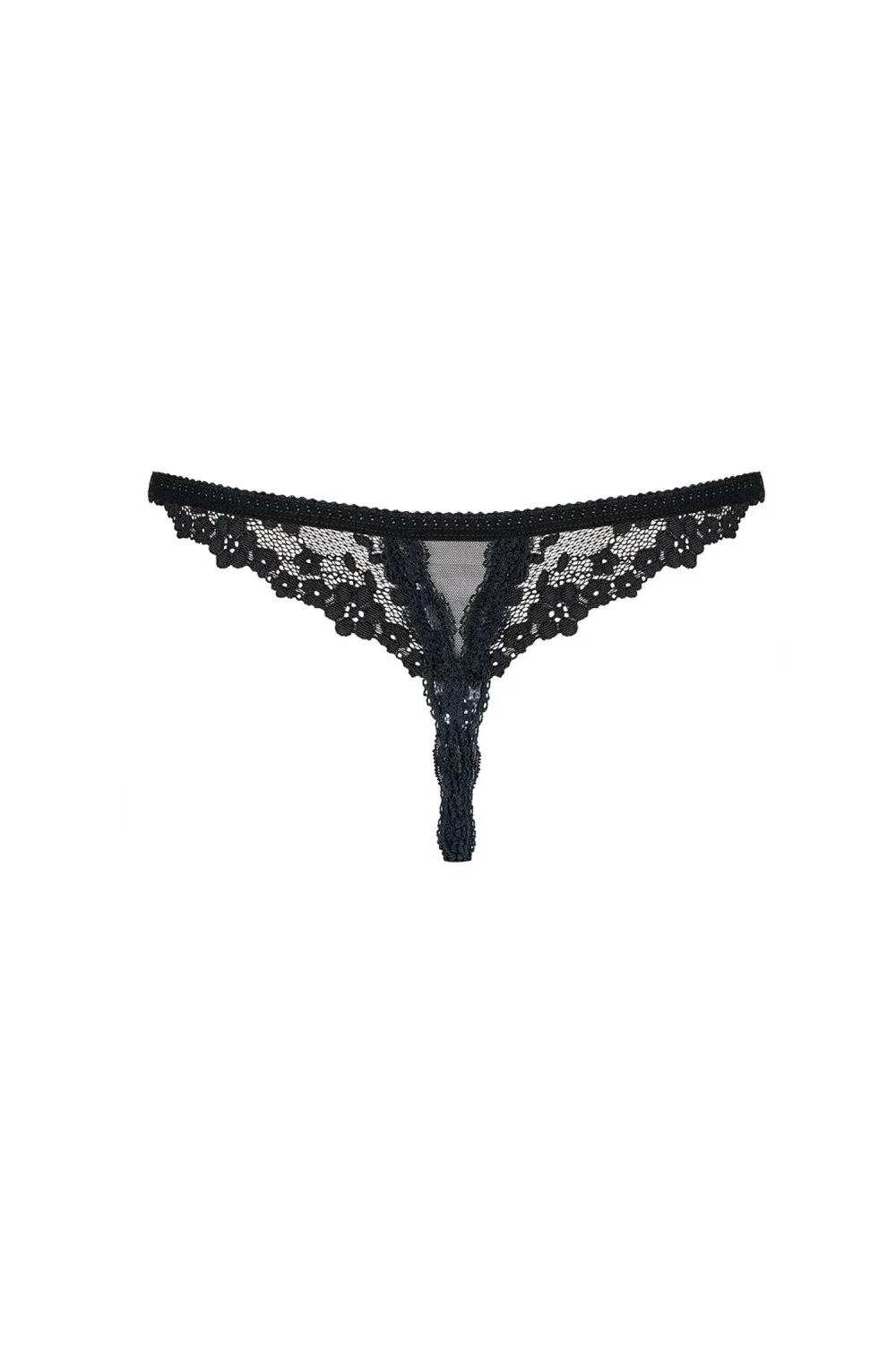 Dámská erotická tanga Letica crotchless thong OBSESSIVE - černá barva - svůdná tanga s úžasnou, květinovou krajkou - otevřený rozkrok dodává spoustu kořenění - sexy design na partiích hýždě - měkké a dokonale elastické tkaniny
