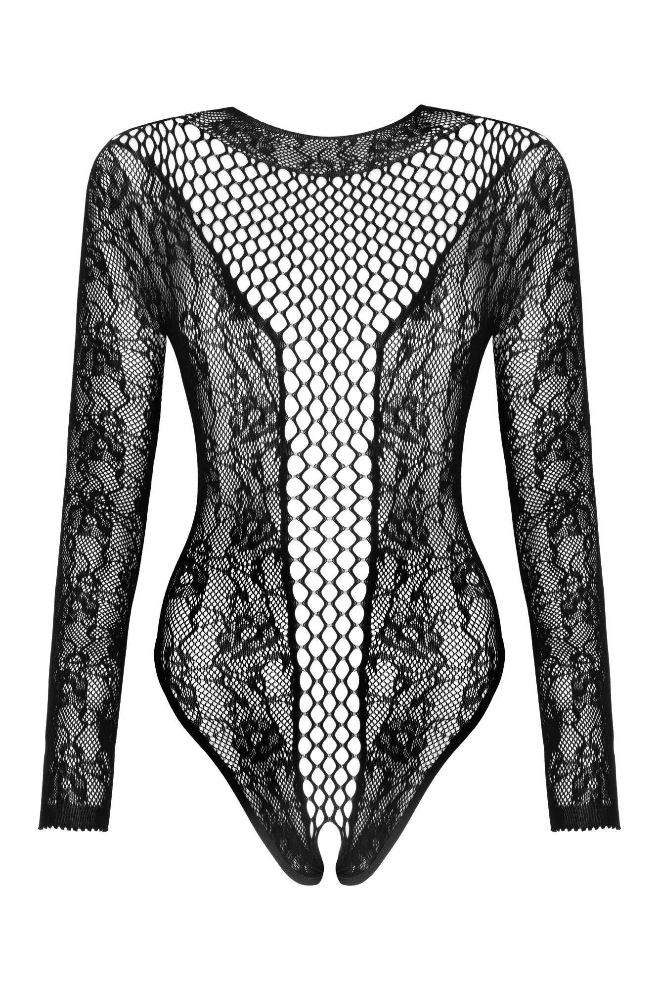 Erotické body Monserrat BEAUTY NIGHT FASHION - černá barva - dlouhé rukávy - otevřený rozkrok
