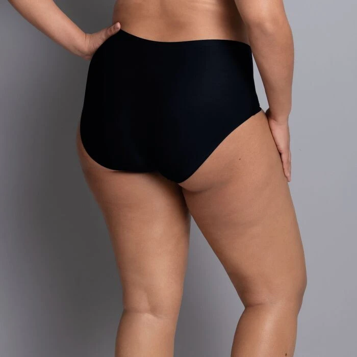 Bezešvé kalhotky s vysokým pasem a širokými boky, vyrobené z prodyšného a rychleschnoucího mikrovlákna.