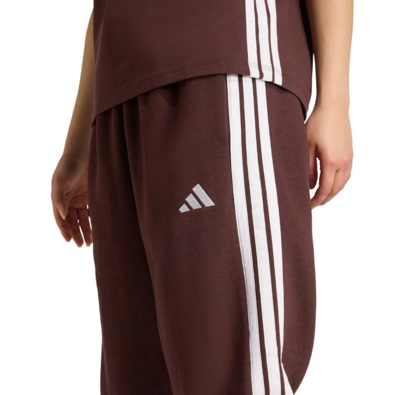 Dámské kalhoty adidas Essentials 3-Stripes Fleece Loose-Fit hnědé JY3069