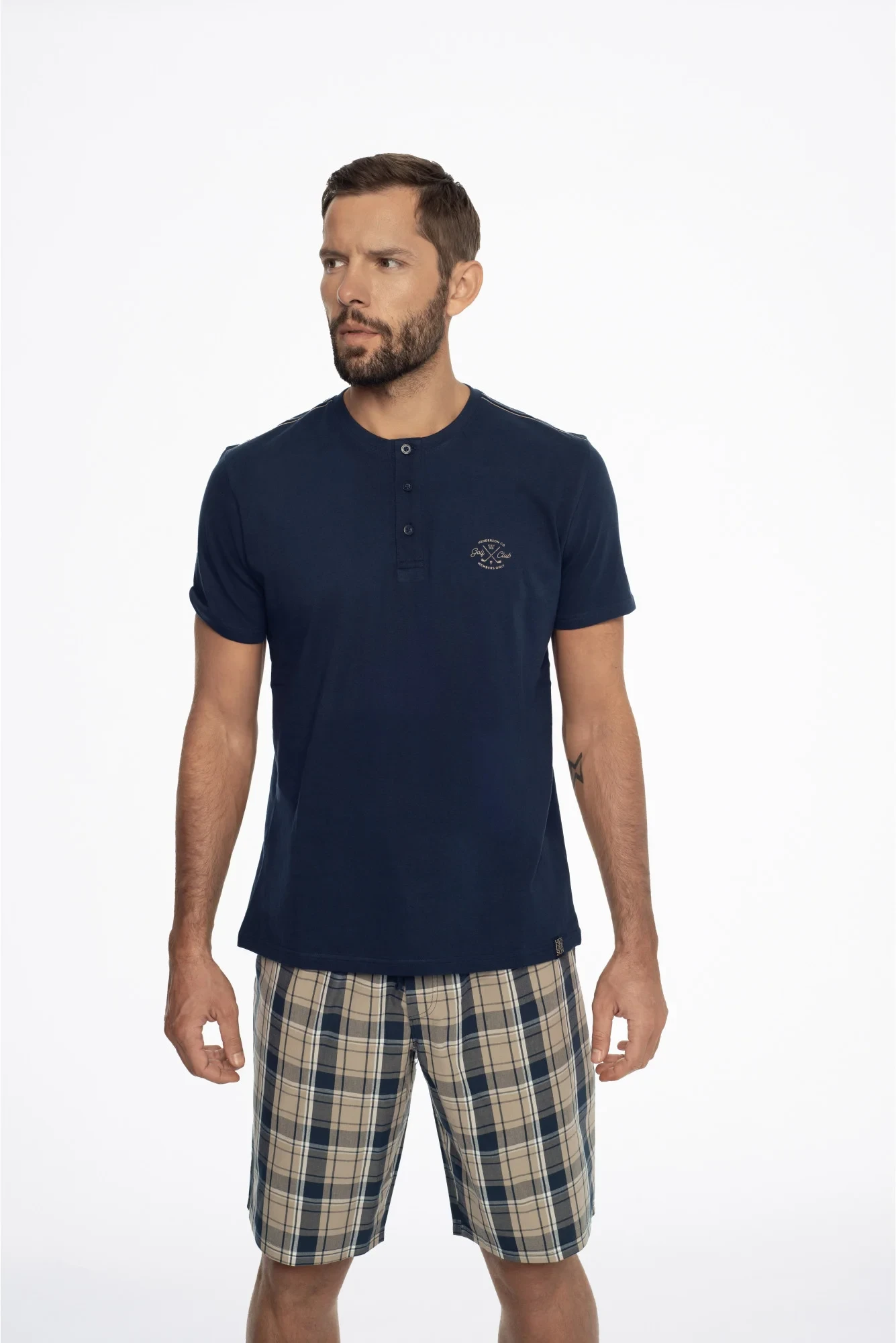 Ethos pyžamo 41294-59X Námořnická modrá a béžová - Henderson