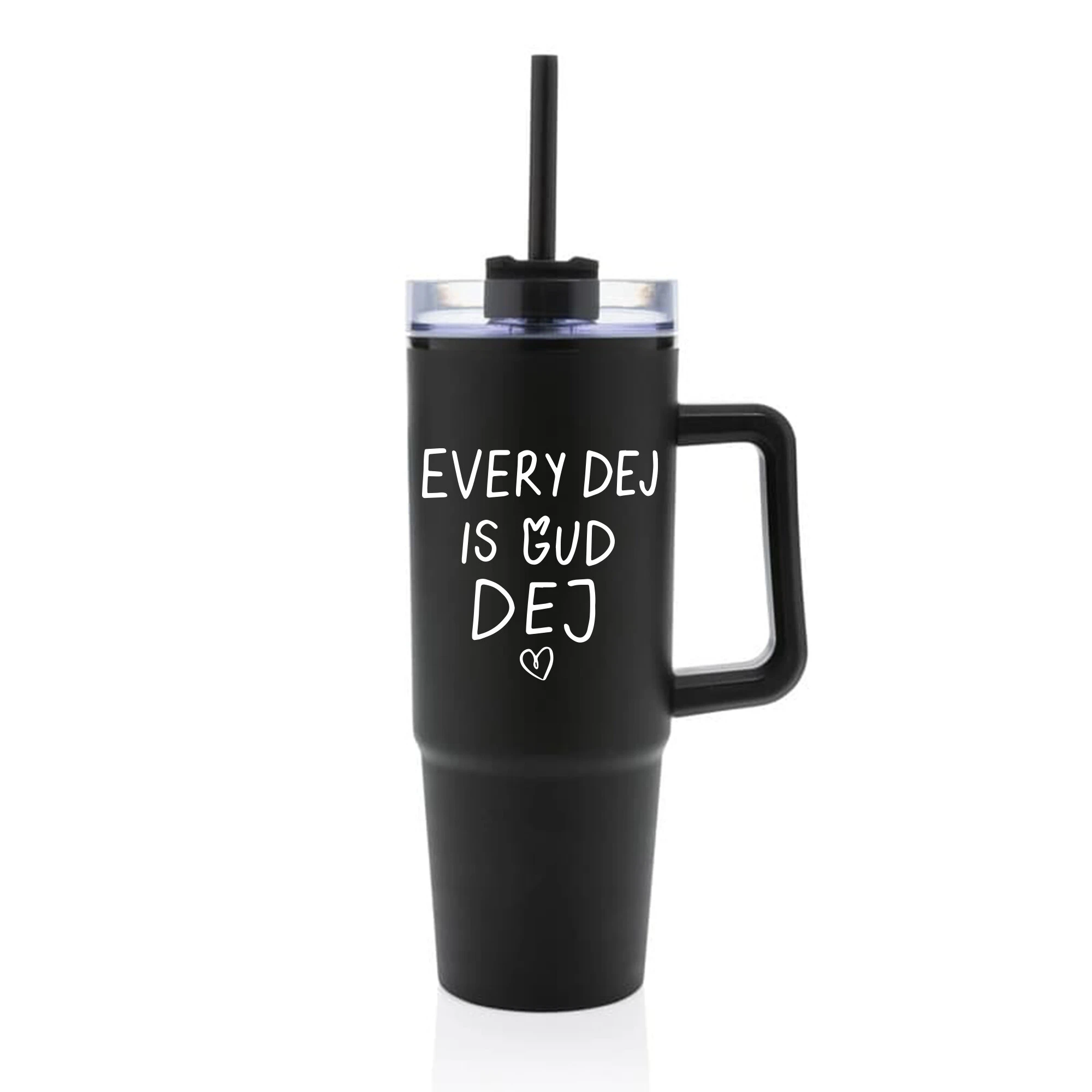 EVERY DEJ IS GUD DEJ - černý cestovní hrnek s průhledným víčkem 900 ml
