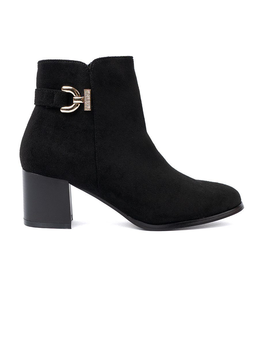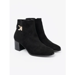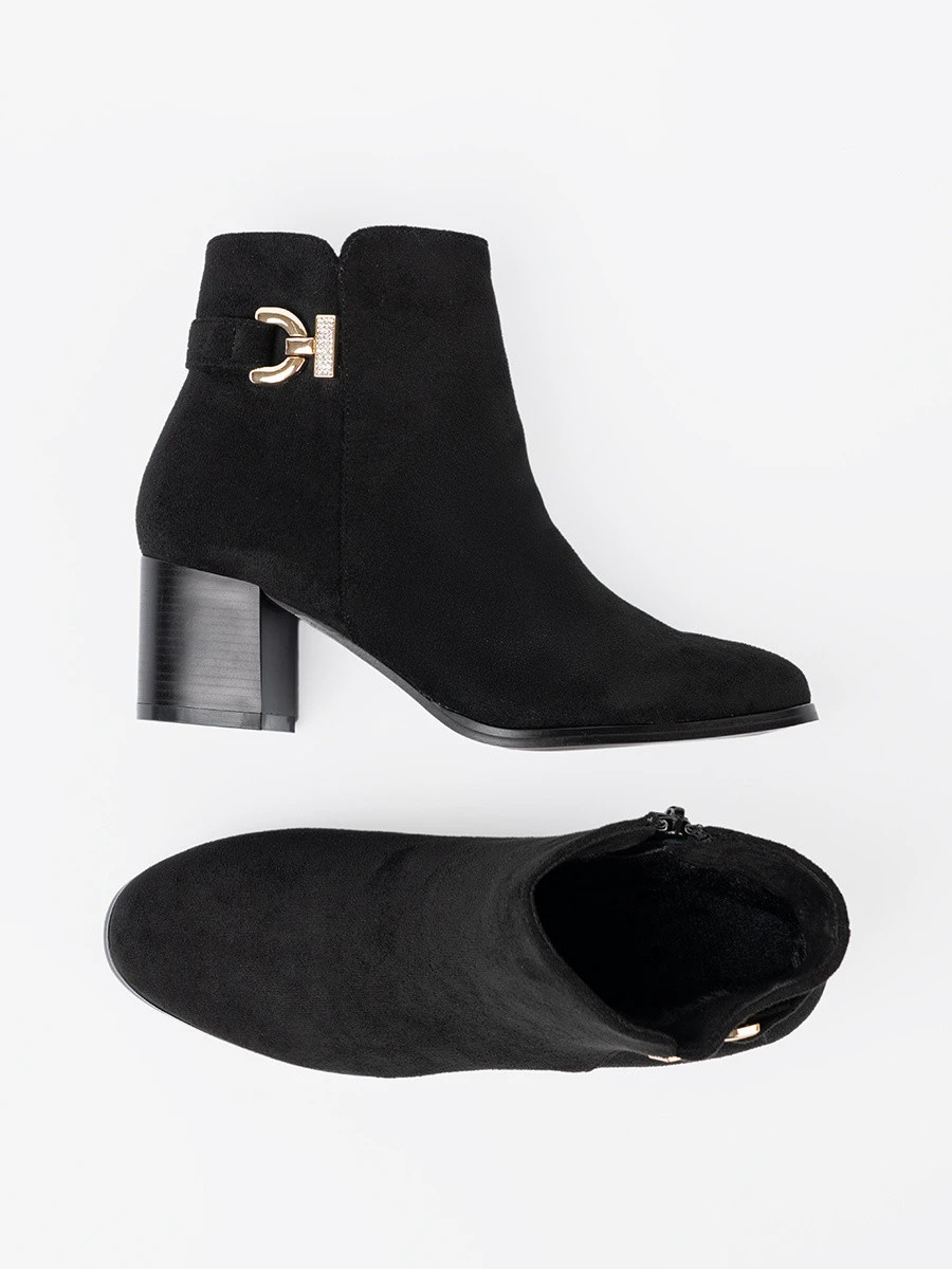 • Exkluzívní černé dámské  kotníčkové boty na širokém podpatku