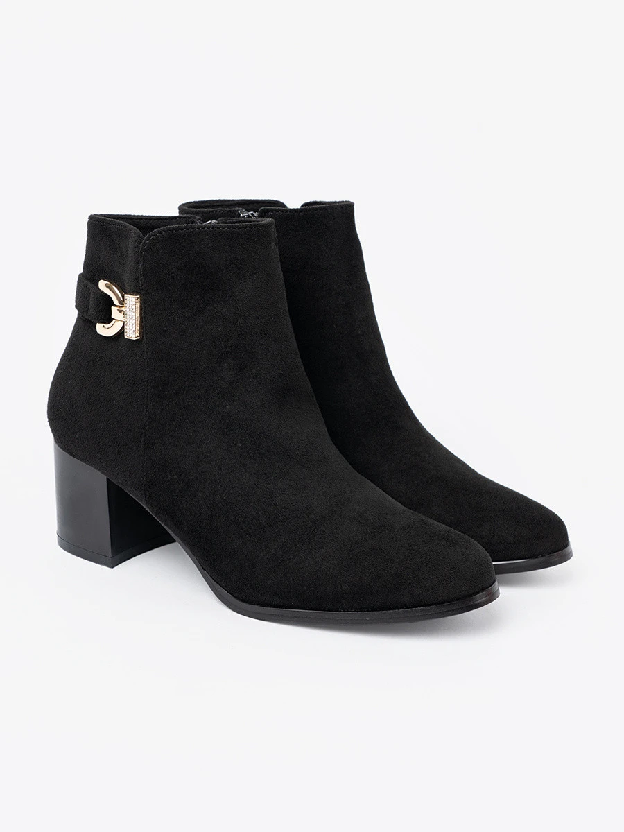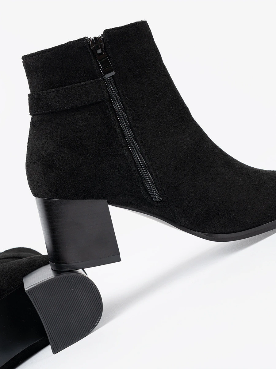 4. Exkluzívní černé dámské kotníčkové boty na širokém podpatku