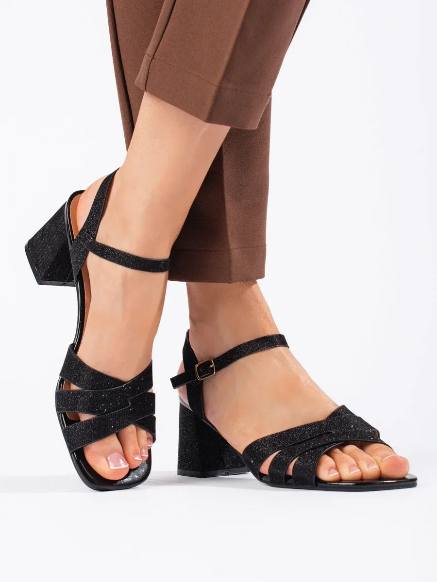 Přidání recenze k Exkluzívní černé sandály dámské na širokém podpatku