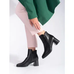 Exkluzívní dámské černé kotníčkové boty na širokém podpatku