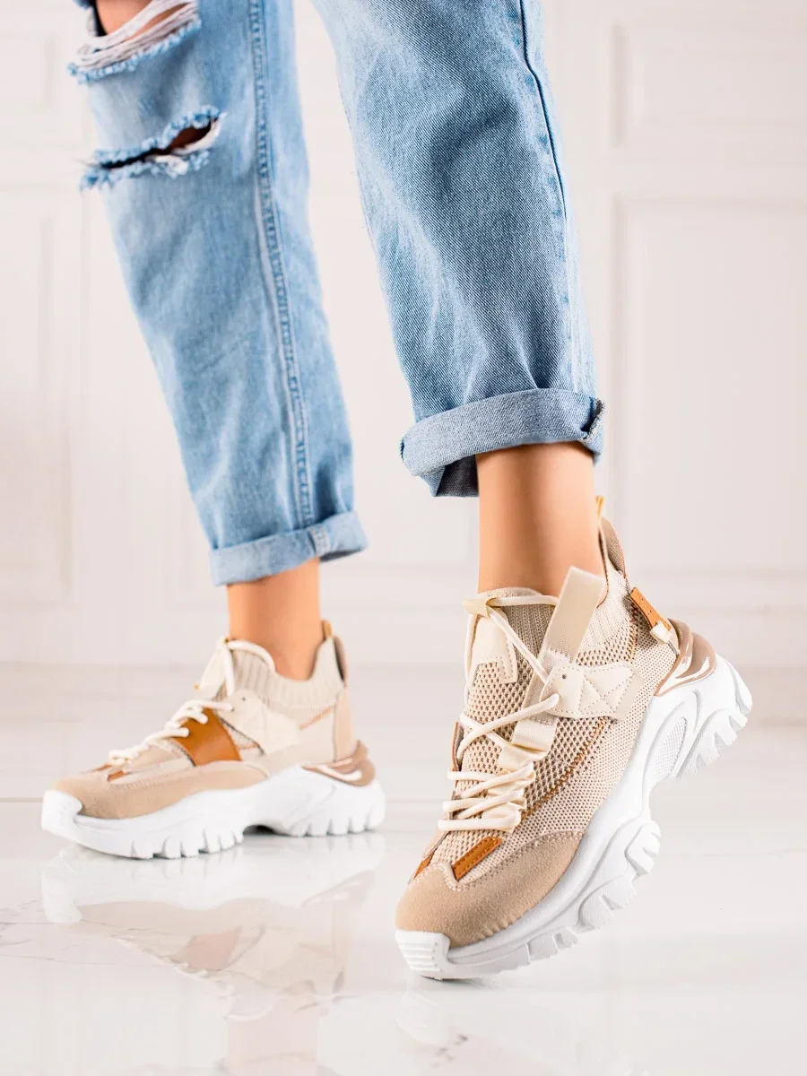 Exkluzívní dámské hnědé tenisky bez podpatku